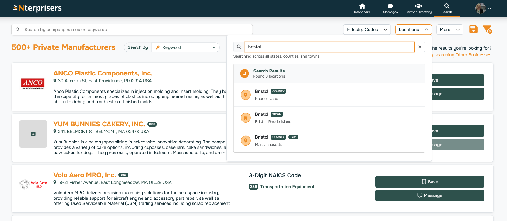 The biggest news this week is the expansion of the Nterprisers dataset to include Massachusetts manufacturing companies. Users can now choose Massachusetts from the dropdown Location filter and see beta data for the Bay State. Choose Search from the main menu to try it yourself!